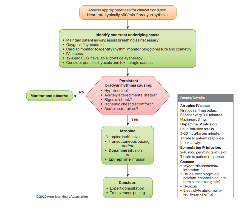 Explain verbally the ACLS algorithm for Bradycardia and Tachycardia.